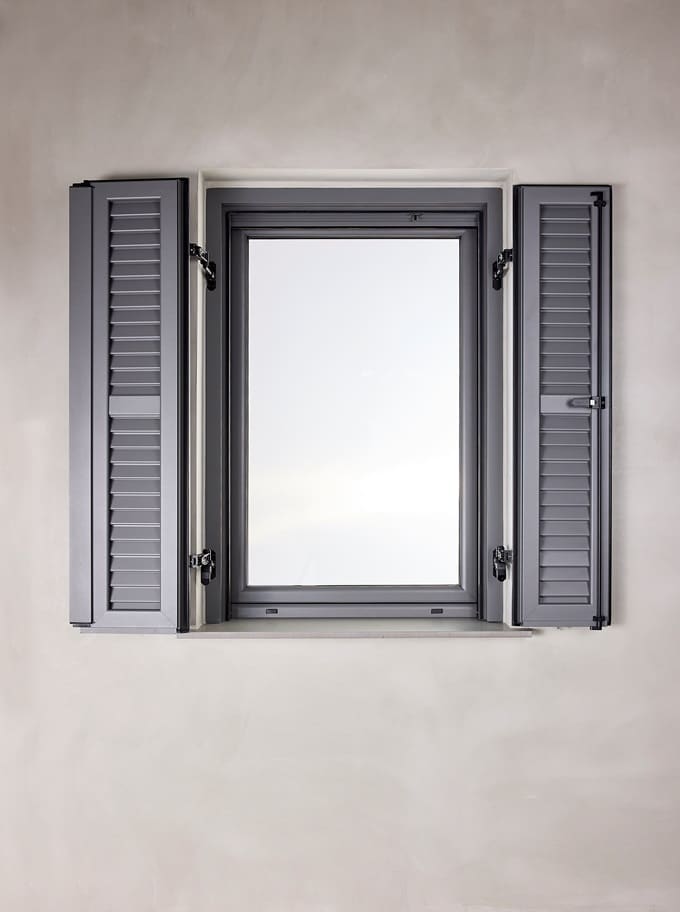 Παντζουρόβεργα ROTO, ώστε να γίνονται και κουφωτά και σύρτη που ασφαλίζει κάθε φύλλο.